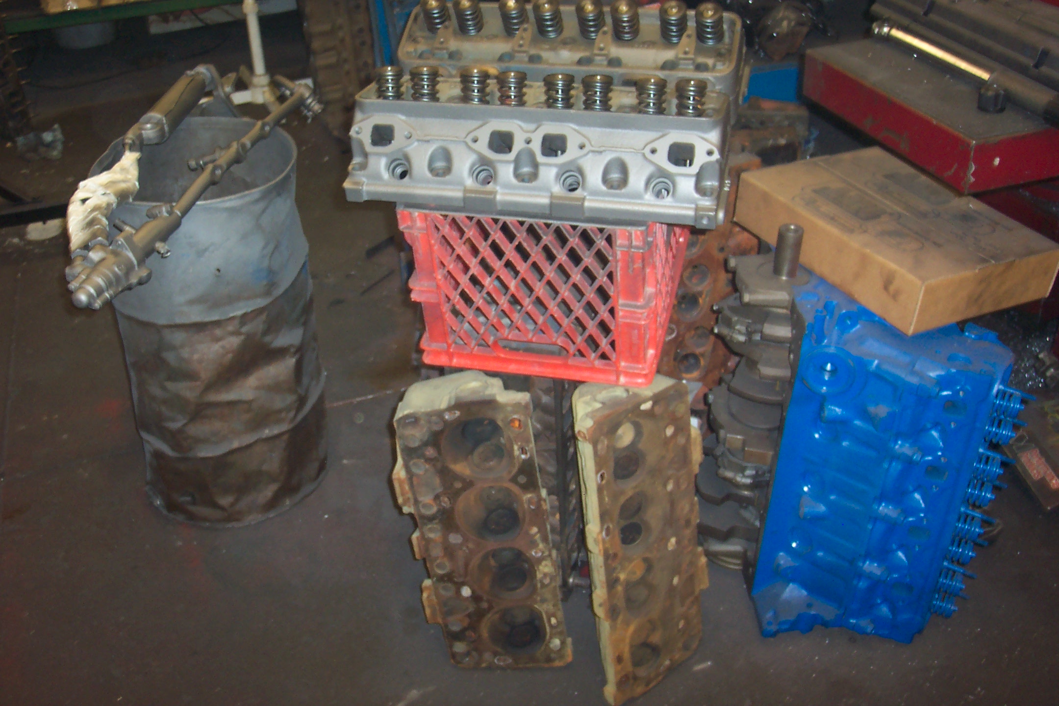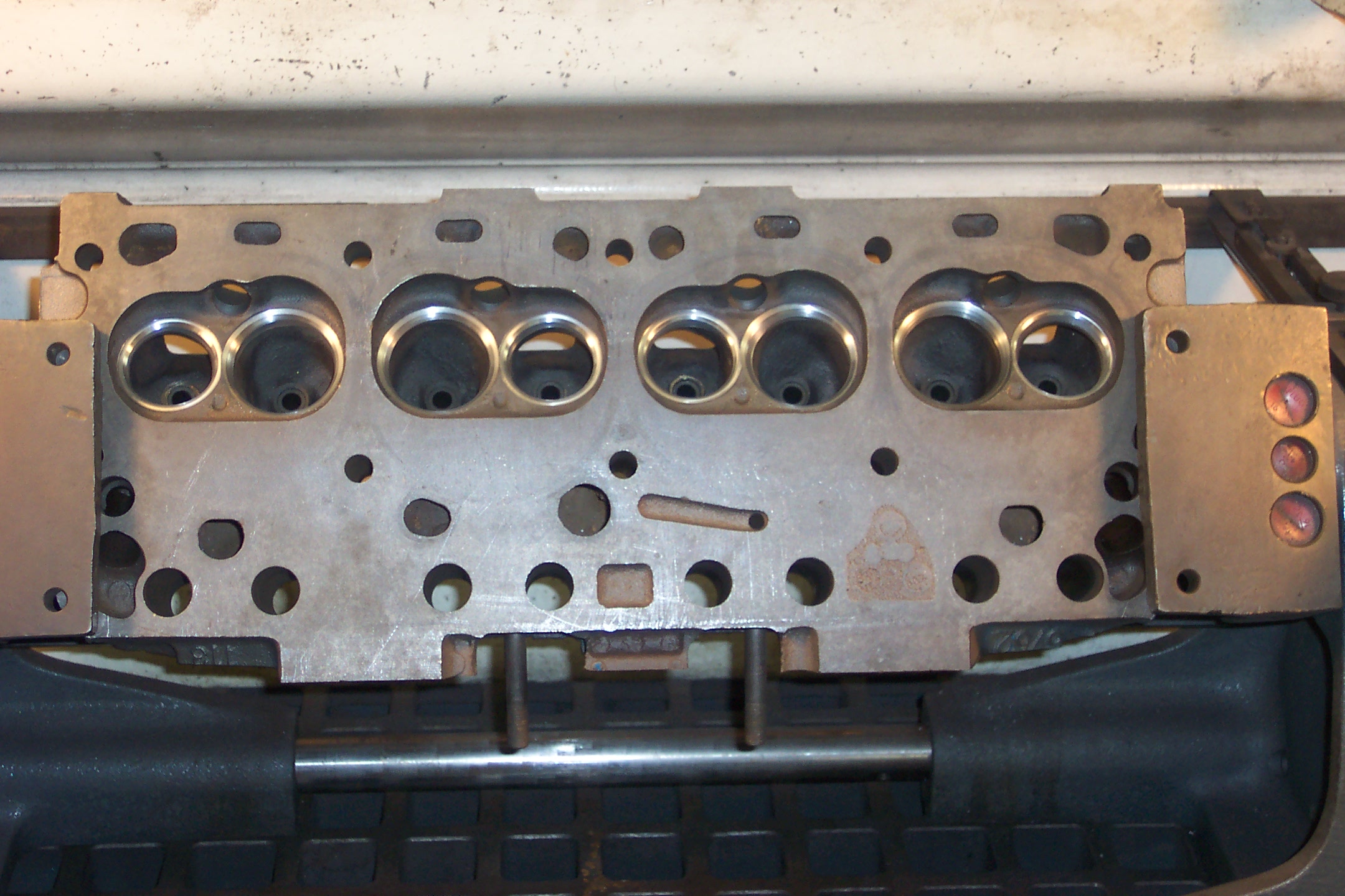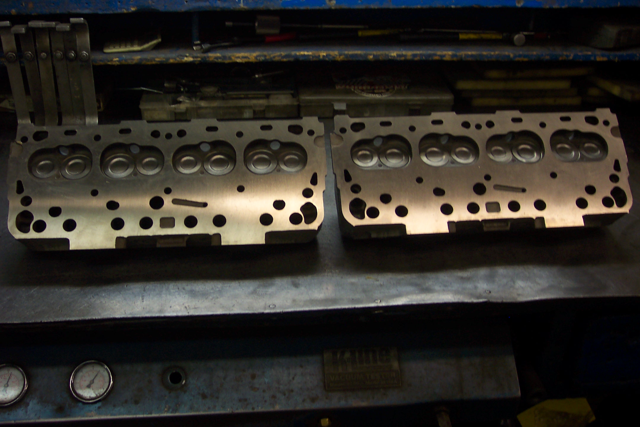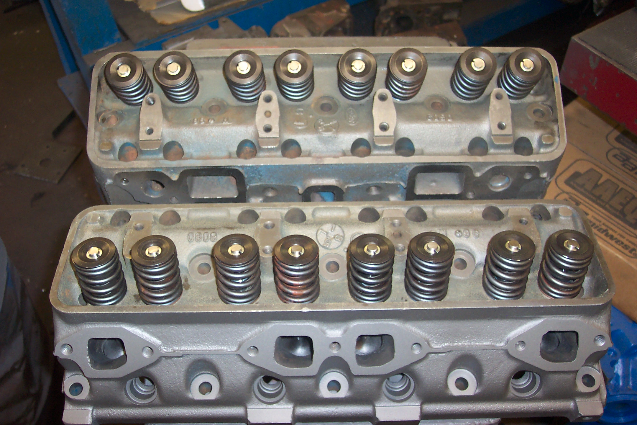 I have the cylinder heads done now. I went with a set of 292 heads off of a 57 Y- Block. I also went with a 57 4-Barrel manifold. Since the 256 has such low compression I decided to mill a little of the cylinder heads to raise the compression. I ended up installing new guides and exhaust seat’s through out. I cut the cylinder heads .025″ and had to cut the Intake side to make sure the Intake would bolt up properly. I’m going to deck the block as well and most likely put the piston .002″ in the hole. I believe somewhere in the mix of these photos is also the power steering assembly I found that will work on the car. It took a while to get that bad boy cleaned up and looking half decent.