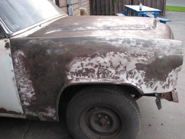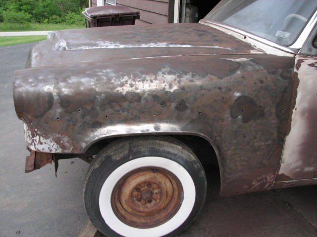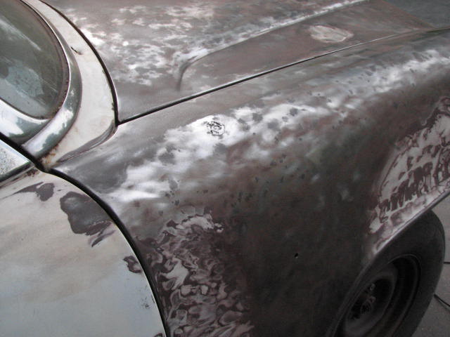 Last night we did quiet a bit of welding and filling in holes. I decided I’m going to shave the door handles, trunk, and other holes that otherwise would of had chrome there or car badge’s. I had to order a new rear quarter patch panel from Mac’s and I also order some other stuff from speedway. The hood was in bad shape but the new hood look should be tight! Stay tune………………